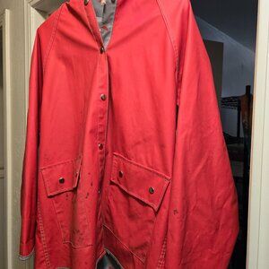 A vintage raincoat by lady van heusen. Size Large color red. Has a cute umbrella print lining.