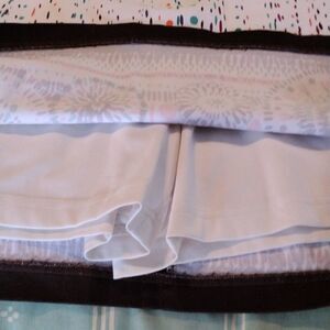 Cool cotton skirt. Poly stretch shorts under. Pockets on front and back. Size 6 measures 32 at waist, 41 at hips. Skirt is 16.5 from top of waistband. Perfect for a warm summer day: golf, bocce, corn hole.