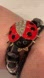 Ladybug large snap is silver, gold with black & red enameled body. Top of ladybug has small gems. Eyes have mini black gems. Genuine black leather bracelet with gun metal & polished silver metal beads. Has a large center snap between beads to change the decorative snaps. Includes 1 decorative snap & 2 free glass dome snaps. Has a double snap closure back of wrist to adjust fit. Measures approximately 8” long. Model wrist is 6.75” & on first snap. Unisex for men, women & youth.