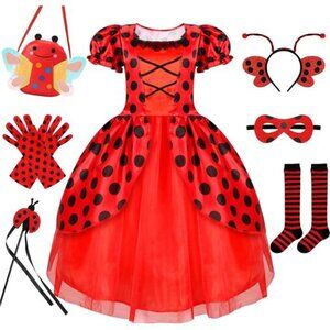 【CUTE LADYBUG COSTUME】this ladybug dress for girls completes with ladybug accessories. A perfect addition to any dress-up trunk, and all little ladybug fans will adore this ladybug dress up set. 【MATERIAL】Made of high-quality fabric, this lady bug costume for girls is comfortable to wear and easy to maintain. It is also soft and lightweight, making it the ideal costume for those long hours spent themed party. 【FEATURES】Vibrant black polka dots on red tulle dress matching ladybug's signature spotted look. The length of this ladybird costume reaches below the knees, dancing and twirling in this ladybird dress is sure to be a joyous experience. 【OCCASIONS】Perfect for daily wearing, ladybug themed birthday party dress up, ladybug Halloween costume, ladybug cosplay, role play, summer dress, photo prop, class activities, carnival, holiday, Children's Day, Christmas gifts. department : girls