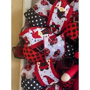 Ladybug Gnome Wreath Red Black White Mesh Polka Dot Door Decor Spring Summer 24”