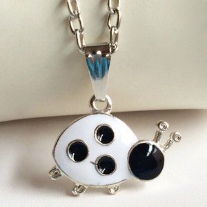 Ladybug Necklace 20" Black White Enamel Insect Beetle Bug Silver Plated