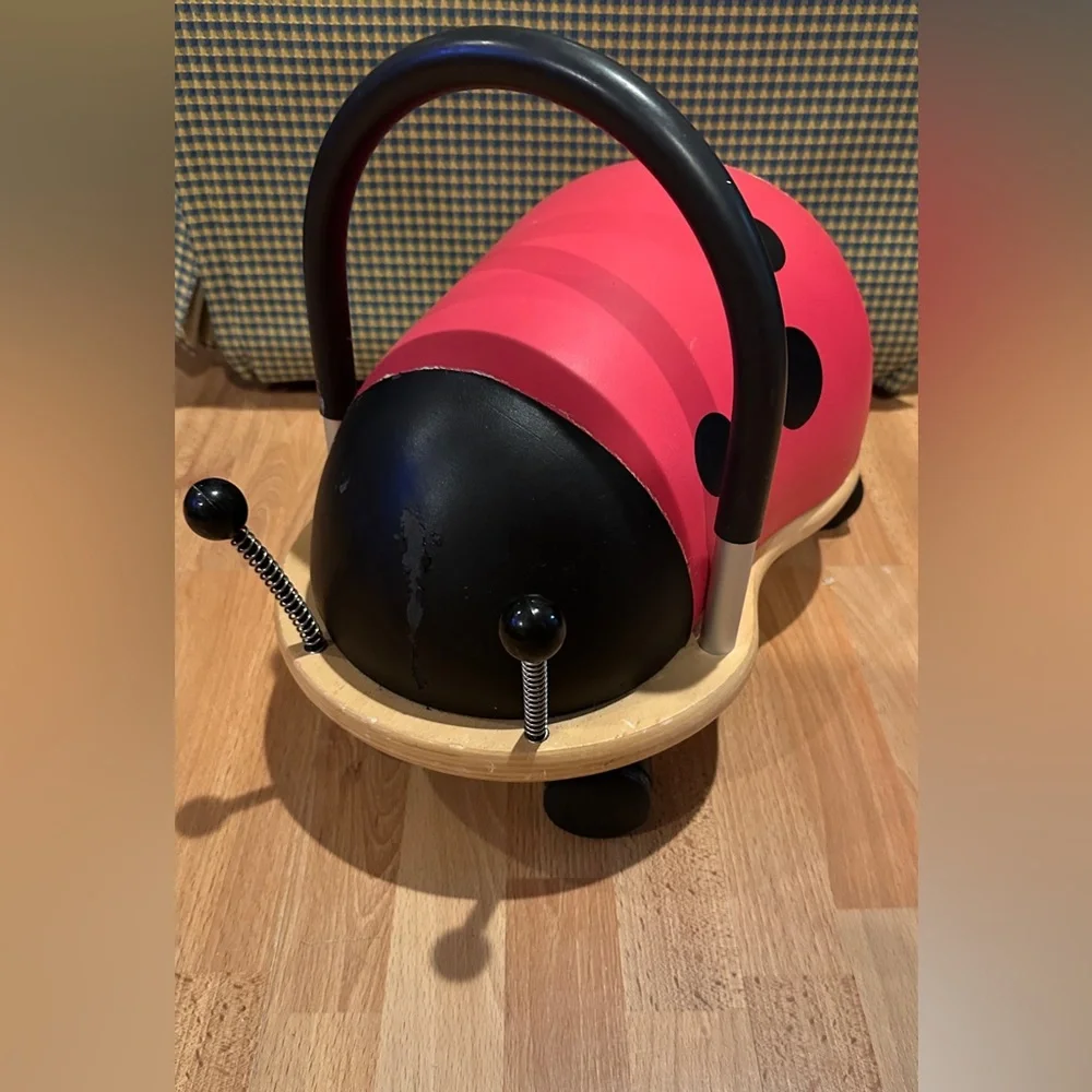 Delight your child with this adorable ladybug ride-on toy. Very durable and fun, this will last for another two children at least. Only used indoors and has visible signs of wear in the leather (see photos). It’s a super smooth ride. Retails for $90- cannot be bundled with other items due to weight.