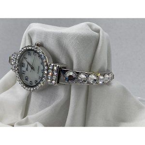 Lady's Watch Silver Toned Clear Rhinestones Geneva Platinum #8032 Stainless Steel Case