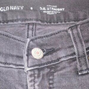 Lady's Old Navy authentic raw hem antique black (O.G. STRAIGHT FIT) Lady's washed/antique style black old navy antique vintage raw hem size 6 og straight high waisted ladies selvedge denim jeans secret smooth pockets vintage and in mint condition with raw hem boy friend fit hi waisted semi cropped raw hem straight fit boyfriend style hi waisted denim jeans super high quality
