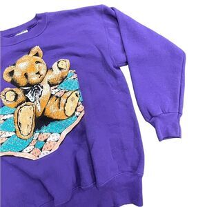 Y2K LEE Teddy Bear themed pullover purple sweatshirt size large