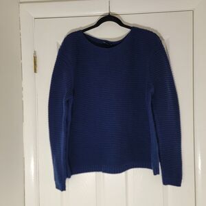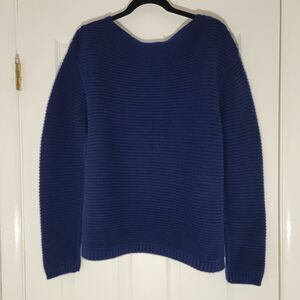 Lafayette 148 100% Cashmere Horizonatally Ribbed knit Heavy thick Boatneck Navy Sweater. Plus Size XXL. Excellent condition with no stains, holes or pills. Weighs 1 lb 5 oz.