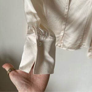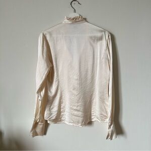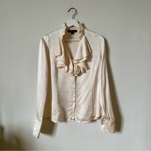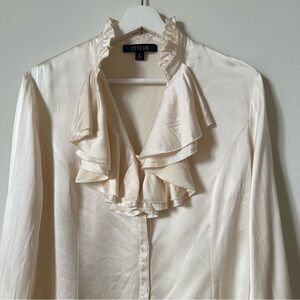 Lafayette 148 100% Silk Button Down Ruffled Shirt in Cream Size 6
