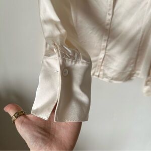 Lafayette 148 100% Silk Ruffle Blouse Cream Button Down Top Size 6