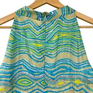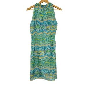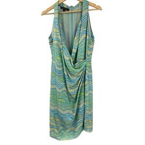 Lafayette 148 100% Silk Wave Print V-Neck Surplice Neckline Faux Wrap Dress Sz 8