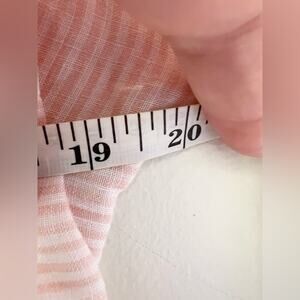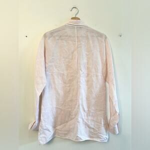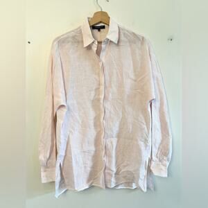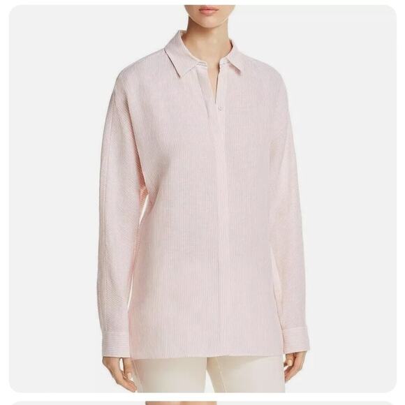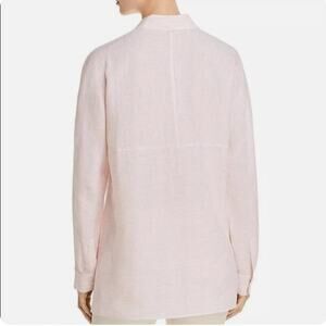 Lafayette 148 100% linen button down blouse pink and white stripe petite bead