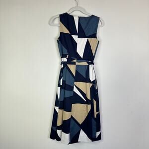 Lafayette 148 Abstract Cotten Blend Belted Midi Dress Pockets Women’s Size 0