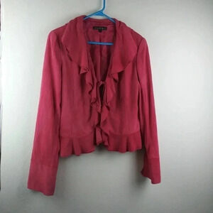 Lafayette 148 Barbie core Ruffled Suede Leather Blazer Bow Tie Boho Jacket(8)