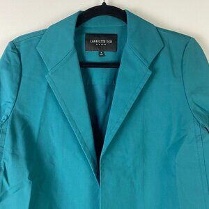 Lafayette 148 Benny Open Front Blazer Jacket Flap Pockets Tropic Teal Size Small