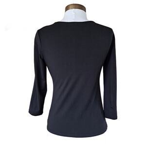 Lafayette 148 Black 3/4 Sleeve Top Size Small Stretch Jersey Pleated