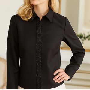 New Lafayette 148 Black Beaded Wool Blend jacket