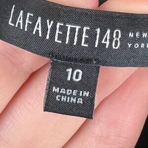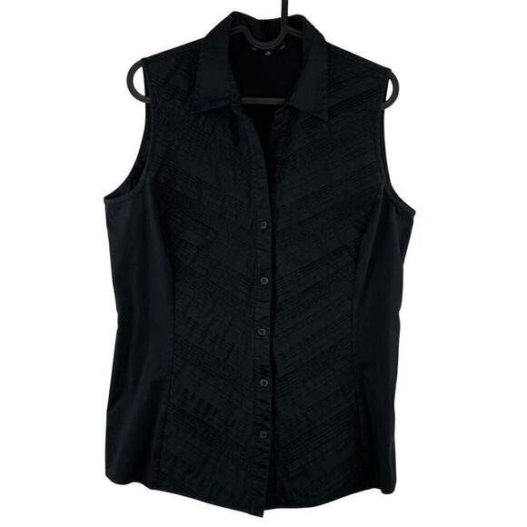 Lafayette 148 Black Pleated Collar Button Up Top Size 10 Minimalist Quiet Luxury