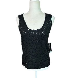 Lafayette 148 Black Sequin Sleeveless Top Size XL