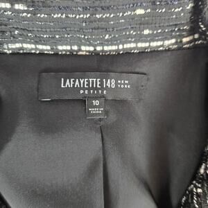Lafayette 148 Black White Crop Tweed Blazer 10 Petite Prep Academia Quiet Money