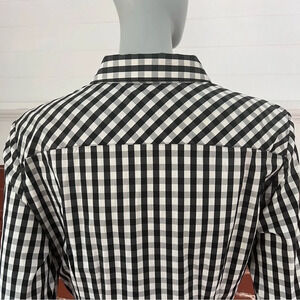 Lafayette 148 Black and White Gingham Fitted Button Down Shirt Checked Top