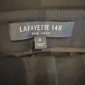 Lafayette 148 Black Dress Pants Trousers Flat Front Stretch Size 0. Excellent condition. See photos for details and unstretched measurements. View my closet to add other items and bundle to save with one shipping fee!