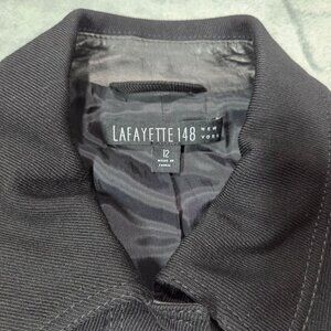 Lafayette 148 Blazer 12 Black Wool Blend Leather Trim Business Casual Jacket