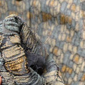 Condition is "Pre-owned". Care tag is illegible. The inside sleeves have some pulls and loose strings from wear. See last photos