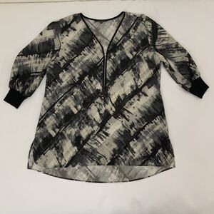 Lafayette 148 Blouse Women S Black Gray Abstract Zip Lightweight Flowy Designer
