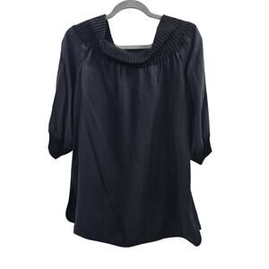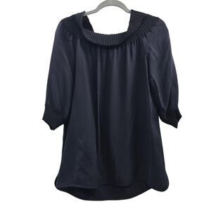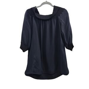 Lafayette 148 Blouse Womens Medium Navy Blue Pleated Top