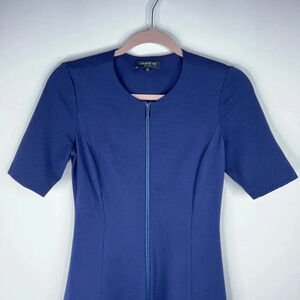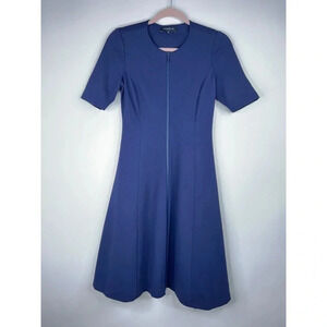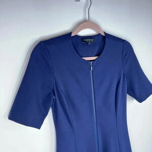 Lafayette 148 Blue Full Zip Dress Fit And Flare Short Sleeve Office Size 0