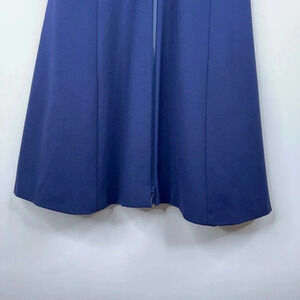 Blue zipper front fit and flare dress from Lafayette 148 New York.