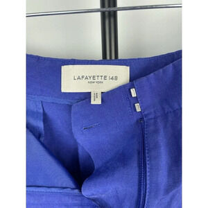 Lafayette 148 Blue Purple Ryerson Silk Linen Flat Front Bermuda Shorts Size 12