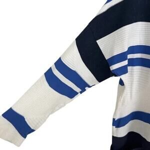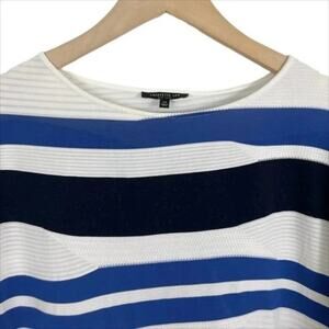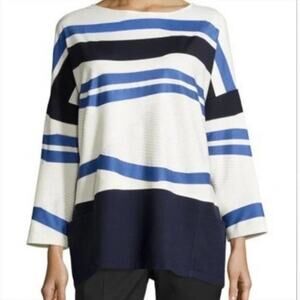 Lafayette 148 Blue and White Multi-Textured Striped Top Size Small Petite