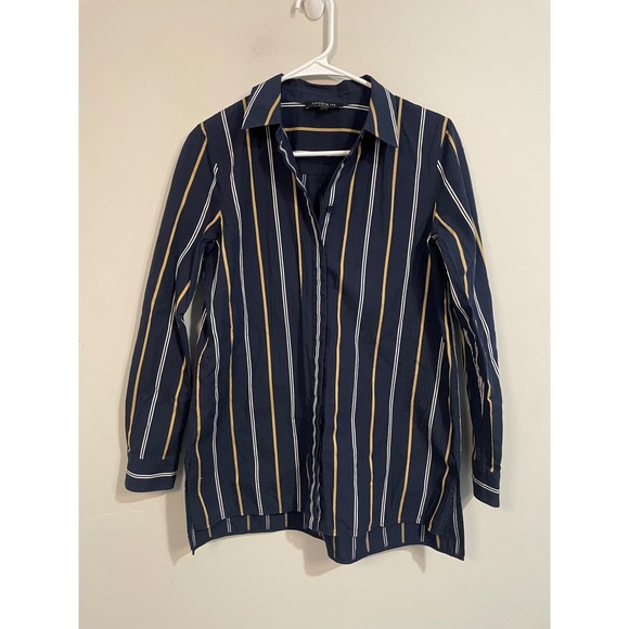 Lafayette 148 Brayden Riverside Stripe Tunic Button Up Shirt Size Small
