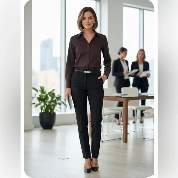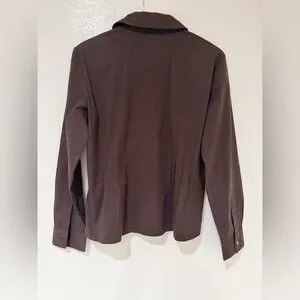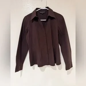 Lafayette 148 Brown Button-Up Cotton Blend Workwear Blouse Shirt size 10
