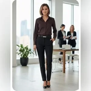 Elegant chocolate blouse by Lafayette 148 New York. Versatile and chic.