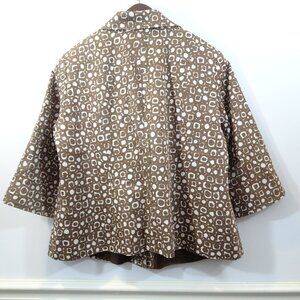 Lafayette 148 Brown Cotton Blazer Size 14 Abstract Print 3/4 Sleeves Boxy Career