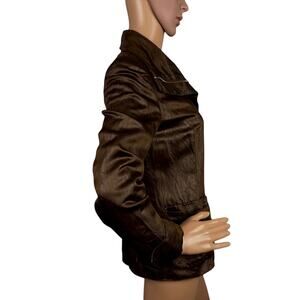 Lafayette 148 Brown Leather Look Full Zip Jacket Satin Feel Lined SZ 0 Designer