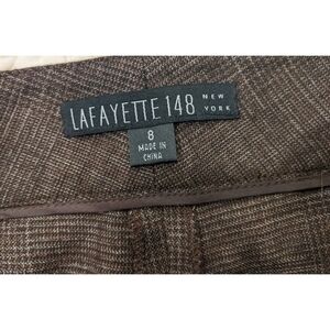 Excellent pre-owned condition. Lafayette 148 brown virgin wool blend micro plaid dress pants. Sample. Size 8