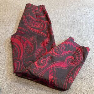 Lafayette 148 Brown Pants Red Paisley Embossed Boho Side Zip Elastic Waist Sz 6