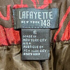 Lafayette 148 Brown Pants Red Paisley Embossed Print Side Zip Elastic Waist Size 6 Work Career Contemporary Boho