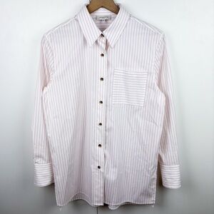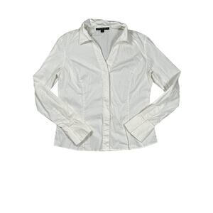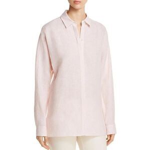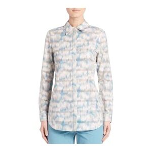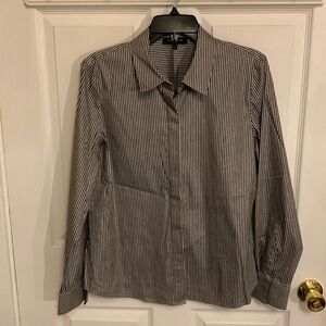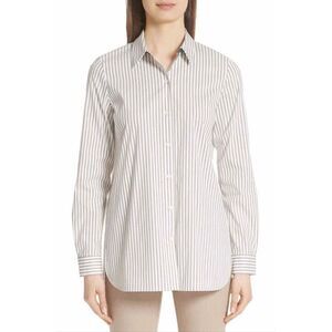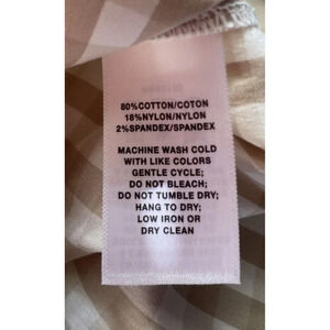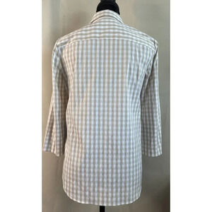 Lafayette 148 Brown White Gingham Button Up Shirt Blouse 3/4 Sleeve Size P.