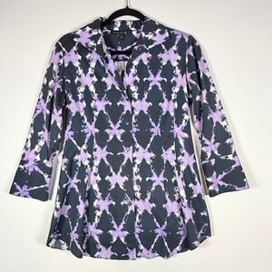 Lafayette 148 Brown White Gingham Button Up Shirt Blouse 3/4 Sleeve Size P XS