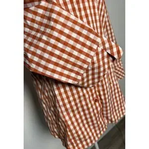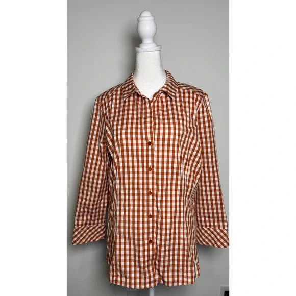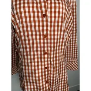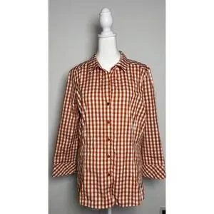 Lafayette 148 Burnt Orange Gingham Button Down Shirt Size 12 Polished Classic