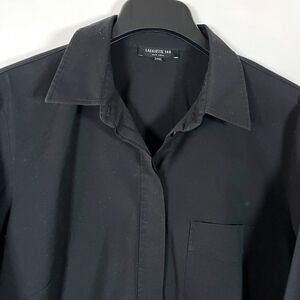 Lafayette 148 Button Up Tunic Shirt 16W Hidden Buttons Double Cuff Black Relaxed
