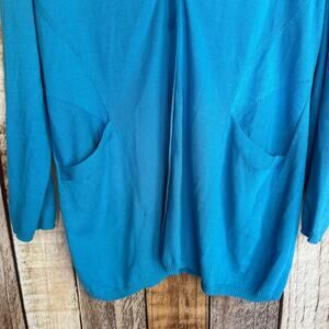 Lafayette 148 Cardigan Sweater Teal Cotton Viscose Basic Classic Layer Work XL