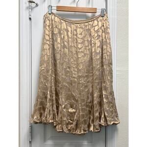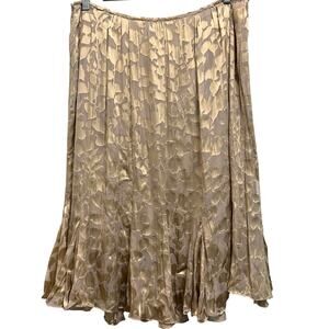 Lafayette 148 Champagne Silk Pleated Floral Ruffle Hem Midi Skirt Size 12