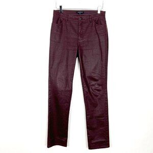 Lafayette 148 Coated Jeans Womens 6 Burgundy Mid Rise Straight Herringbone Print