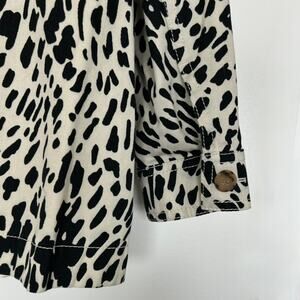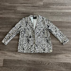 Lafayette 148 Coleman Cheetah Print Twill Blazer Jacket Black White Sz XL Cotton
