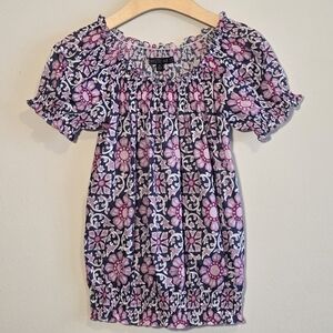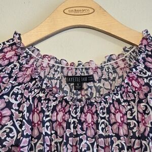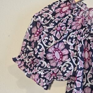 Lafayette 148 Cotton Moroccan Tile Floral Puff Short Sleeve Blouse Sz 6